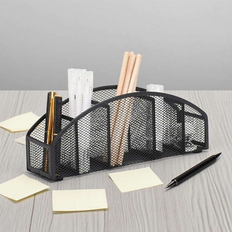 Metal Desktop Storage Box Multi-Compartment Pen Holder Black