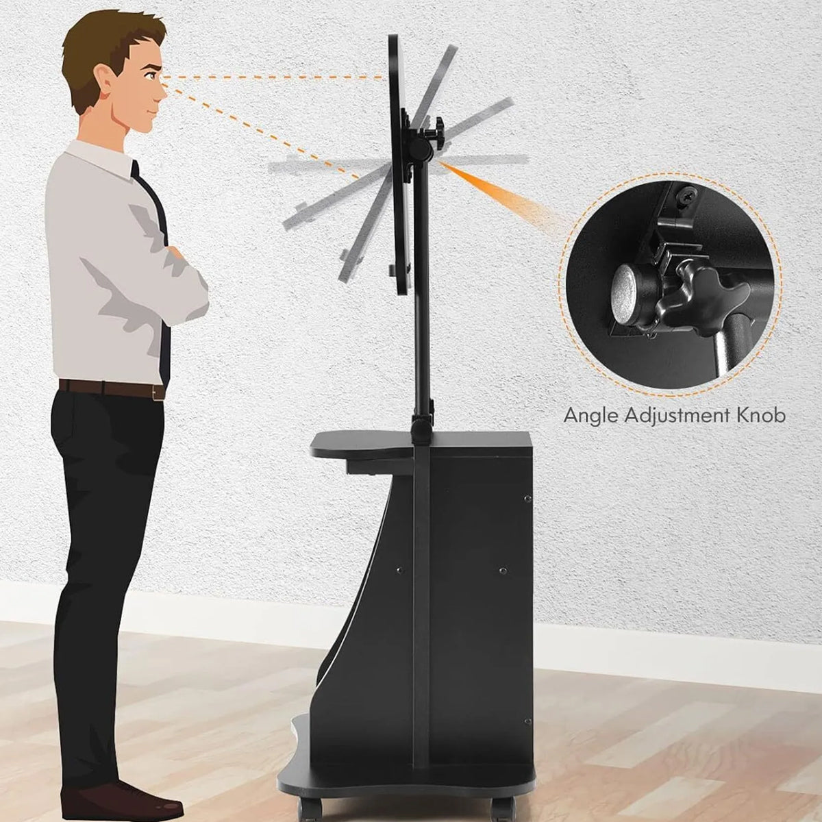 This mobile height adjustable table serves well as a sofa side table or computer desk for home and office use. The adjustable height and angle allow comfortable positioning for working, reading, or daily tasks. It features a layered storage design, including an open compartment and a lower cabinet, helping keep books, documents, and essential items organized. The wheeled base supports smooth movement, while its compact structure makes it suitable for limited spaces.