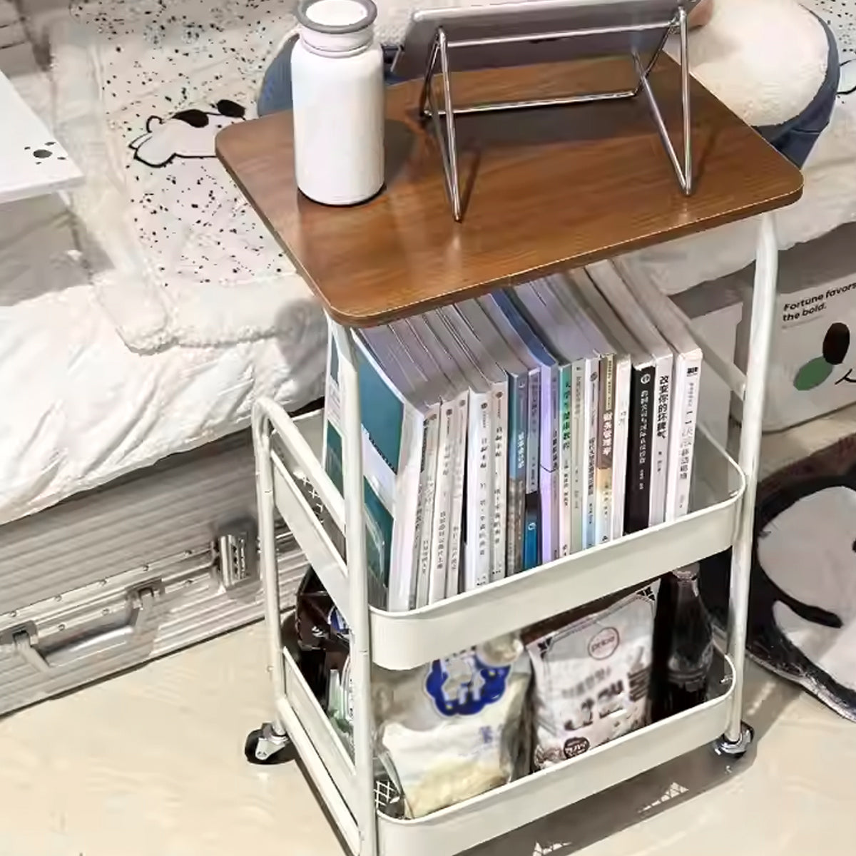 Multi Layer Coffee Table with Rolling Wheels Storage Rack