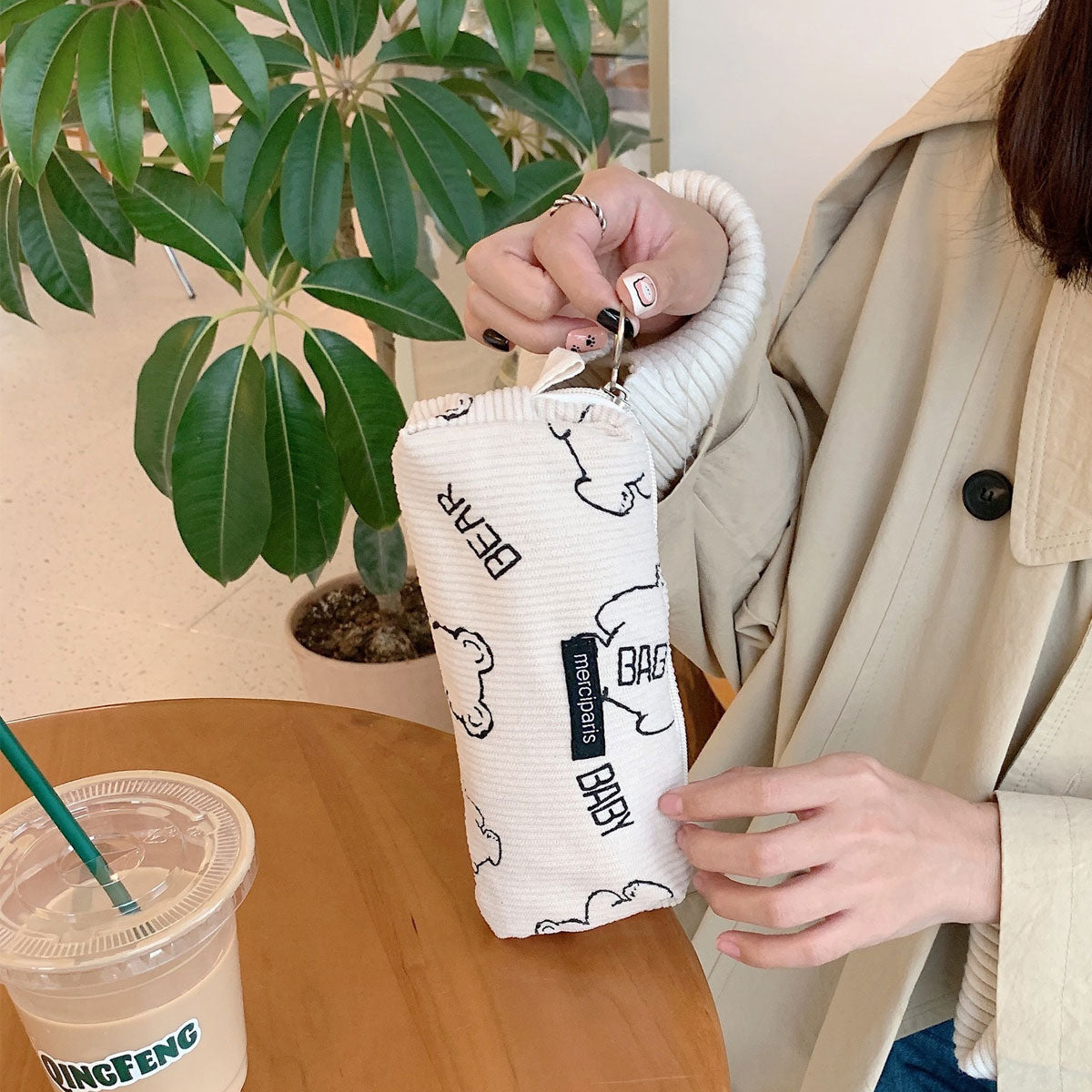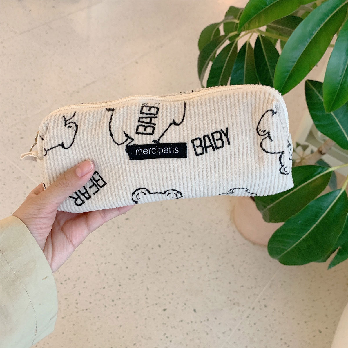 Pencil Case Organiser Bag Large Capacity Corduroy Zipper