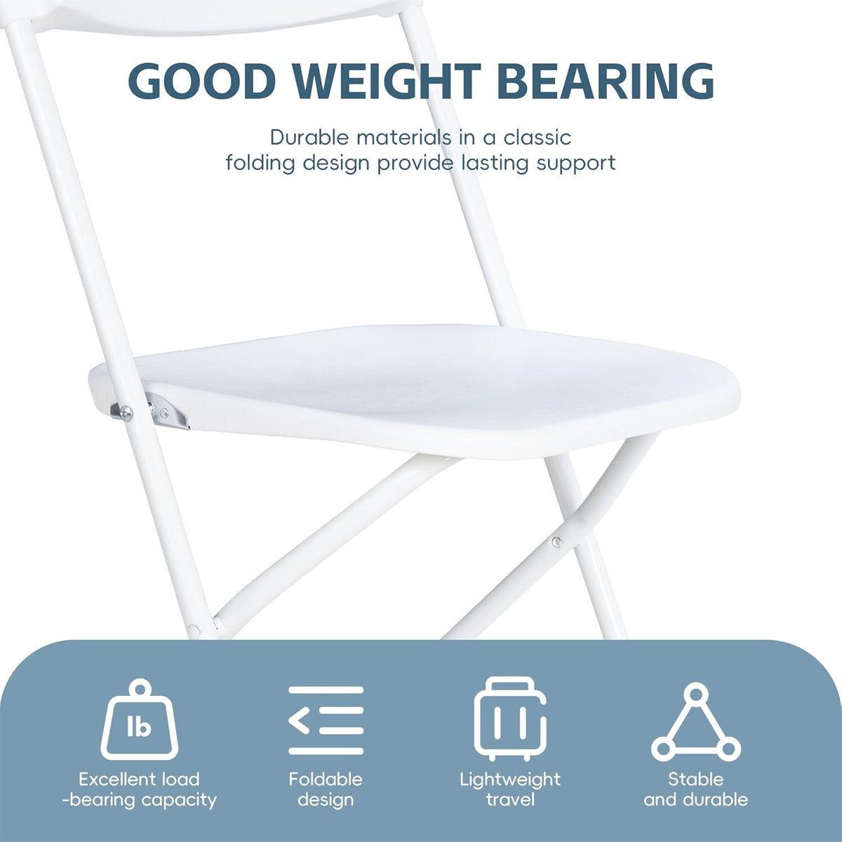 This folding chair features a durable metal frame suitable for indoor and outdoor use. It provides comfortable seating for gatherings, events, home, and office spaces. The foldable design allows for easy storage and portability, while the sturdy structure supports up to 250 lbs. The chair requires no assembly and offers convenient maintenance for daily use.