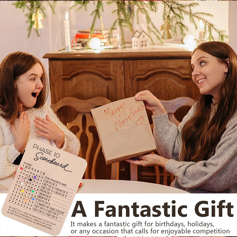 This wooden scoreboard elevates Phase 10 game nights. Crafted from durable wood, it tracks up to 8 players’ progress across 10 rounds. Laser-etched phase instructions and colourful pegs keep gameplay organised and fun. Sturdy enough for indoor/outdoor use, it’s a stylish, reusable upgrade from paper scorecards.
