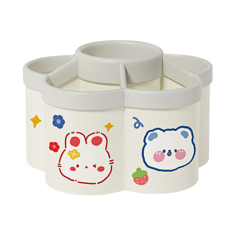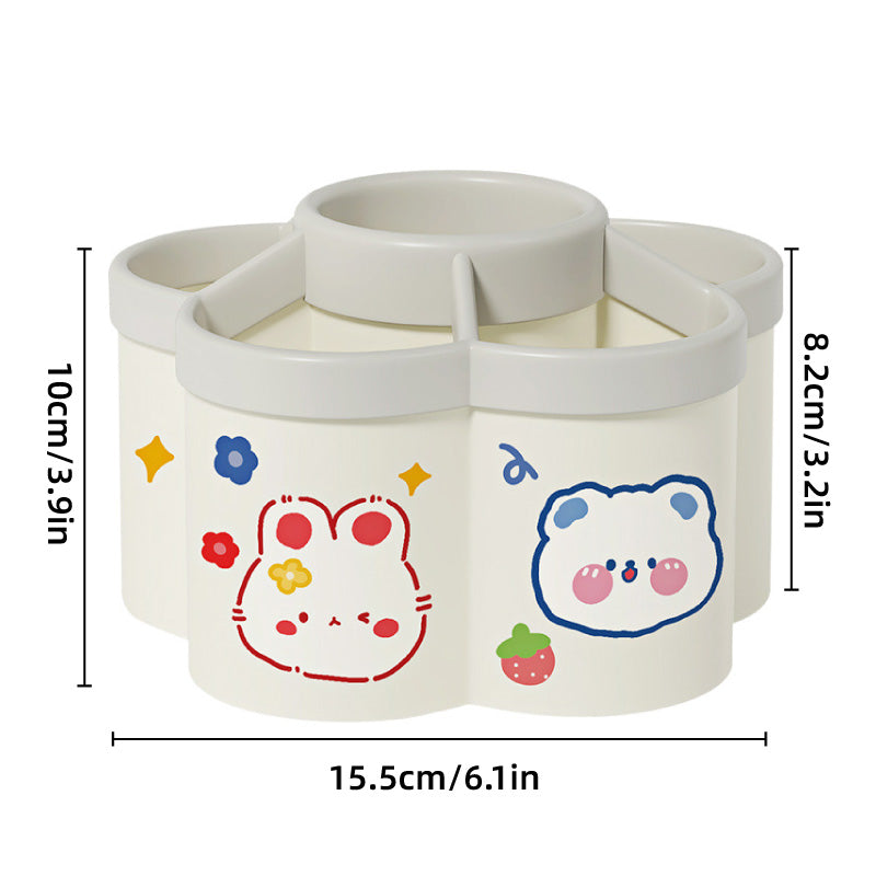 Keep your desk organised with this rotating pen holder featuring six compartments for pens, scissors, markers, and more. The 360° base enables quick access, while durable, waterproof plastic helps maintain a neat workspace at home, school, or the office.