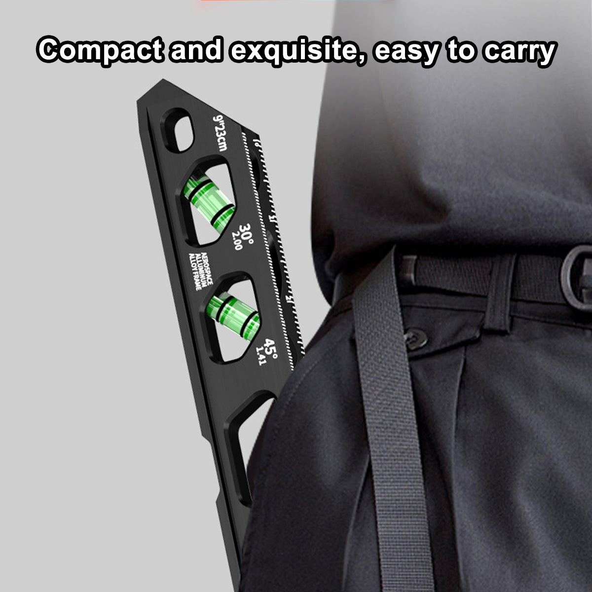 This small spirit level is made from aluminum alloy and is designed for precision measuring in DIY, carpentry, and construction tasks. It features multiple bubble vials for accurate angle readings at 0°, 30°, 45°, and 90°. The compact and lightweight body is easy to carry, while the V-groove design allows stable placement on pipes or conduits during installation and alignment work.