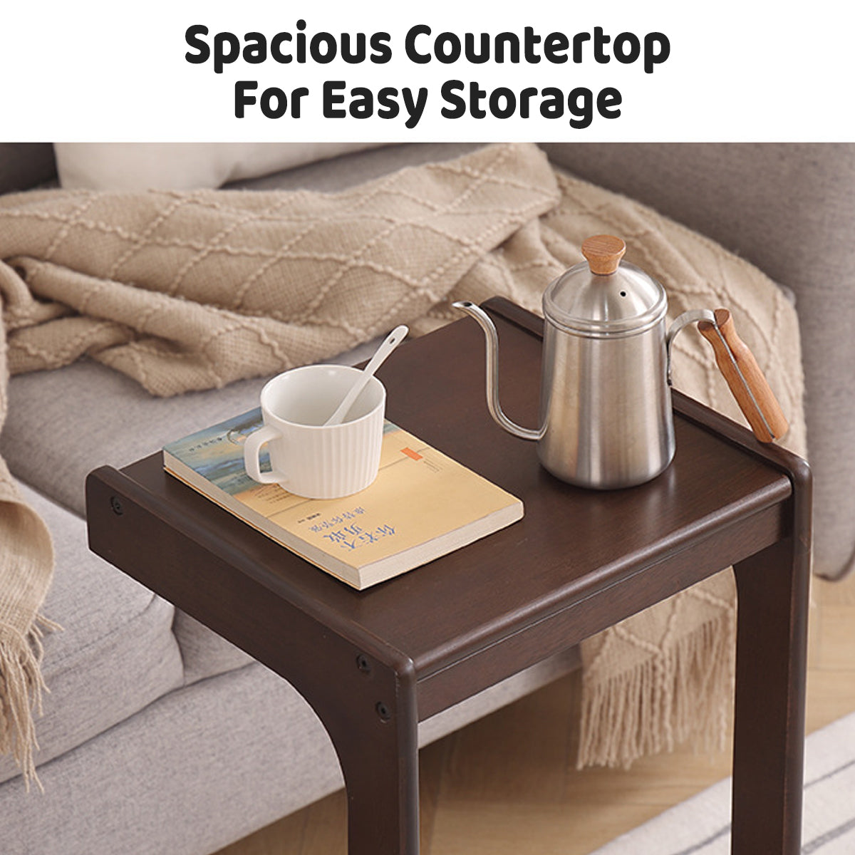 - C-Shaped Design: Allows the table to slide under sofas for closer and more convenient use.