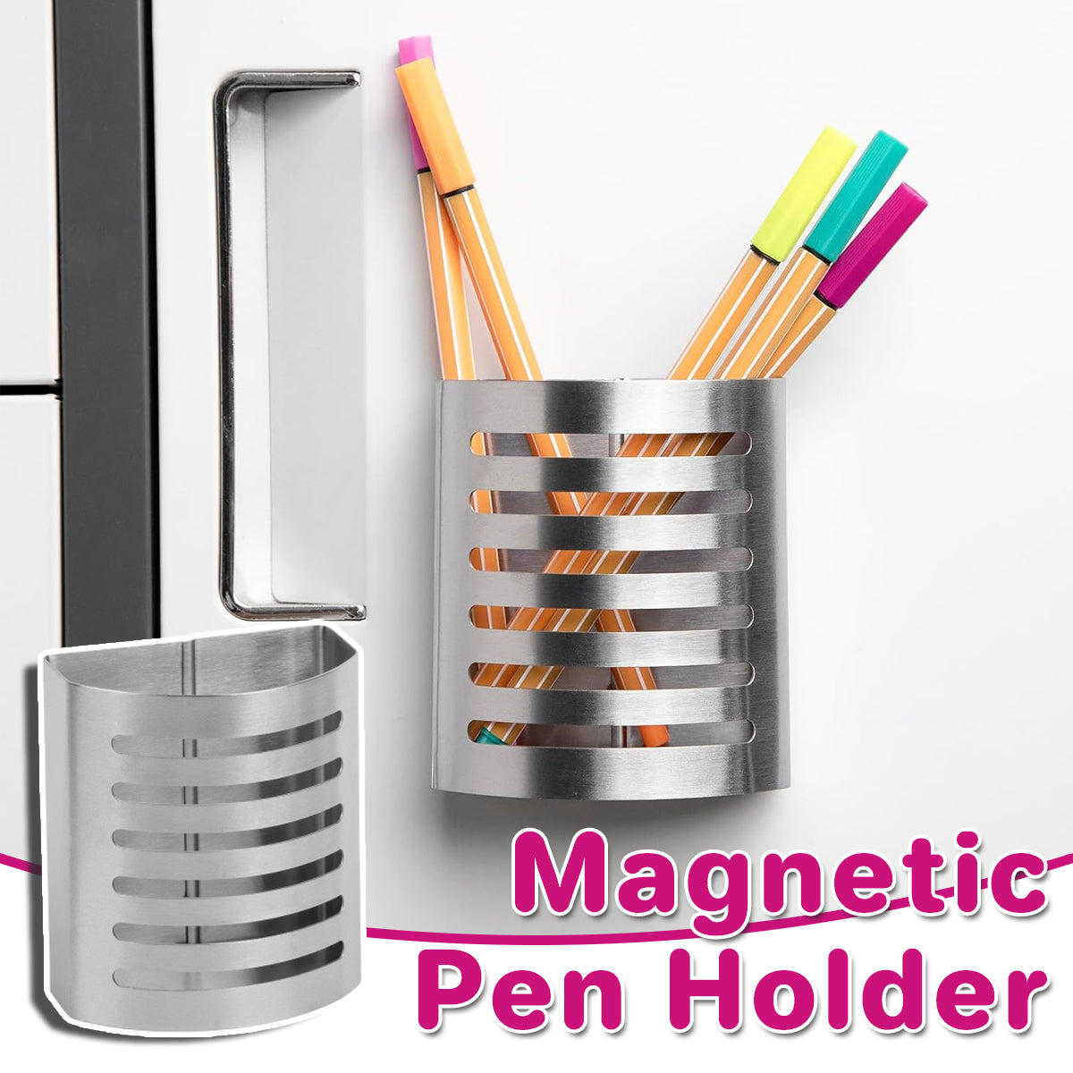Upgrade your workspace with this stainless steel magnetic pen holder. The sleek slotted design promotes airflow, while the strong magnetic backing attaches to metal surfaces such as filing cabinets, whiteboards, or fridges. With ample capacity and a compact footprint, it keeps pens, pencils, and markers within easy reach.