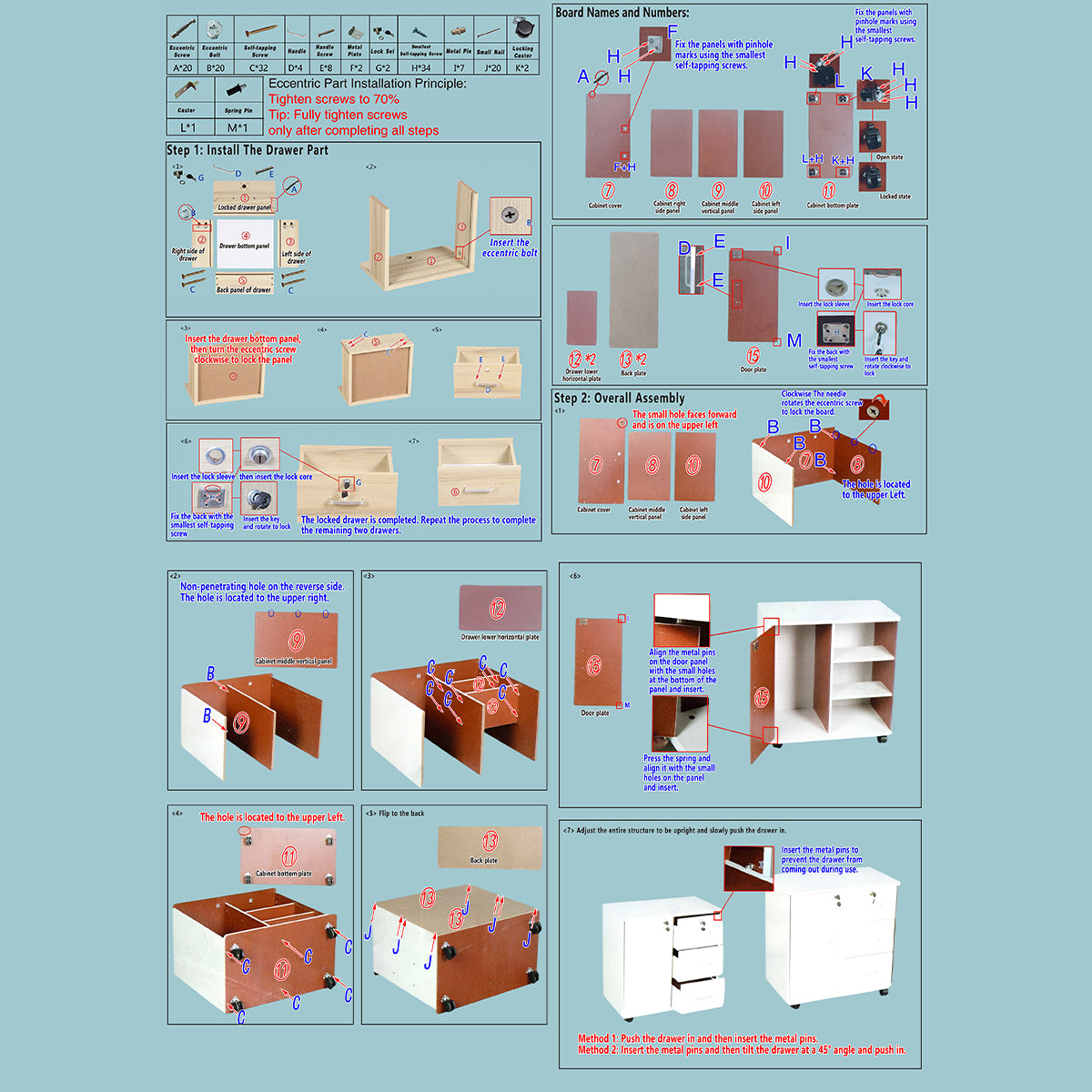 - Smooth Mobility: Universal wheels enable easy movement; locking mechanism keeps the cabinet in place.