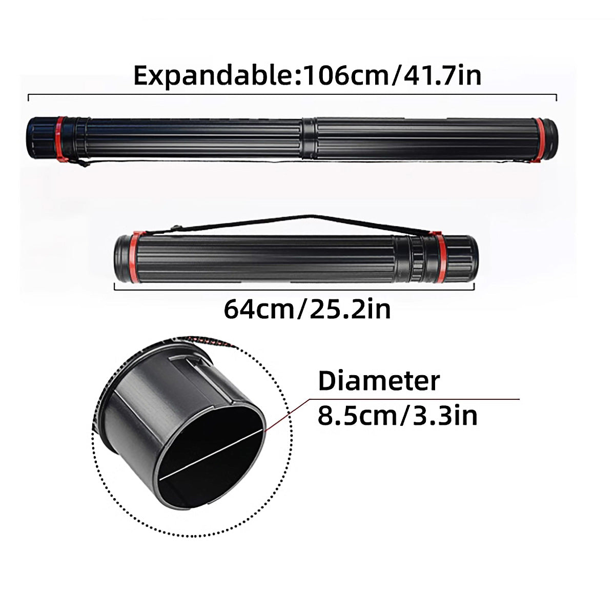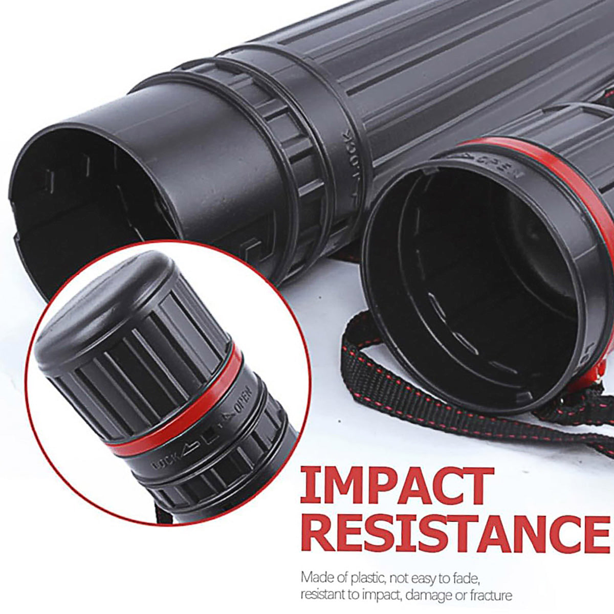 This adjustable telescopic storage tube is designed to protect artwork, posters, blueprints, and documents during storage or transport. Made from durable plastic, it offers resistance to impact, wear, and moisture. The secure twist-lock mechanism helps prevent accidental opening, while the adjustable shoulder strap allows for convenient carrying, making it suitable for students, artists, and professionals.