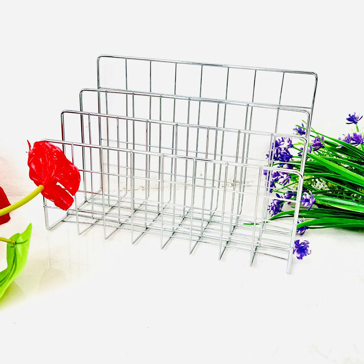 Three Layer Iron Document Organiser Rack Space Saving Silver Finish