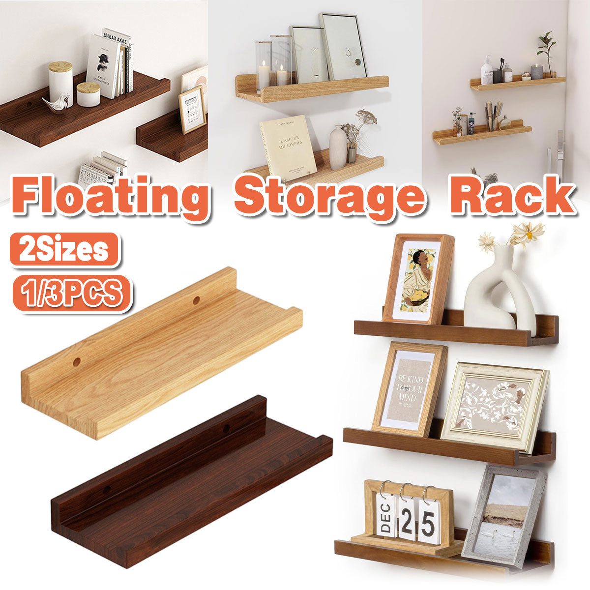 Wall Mounted Floating Wood Storage Shelf for Home Organization