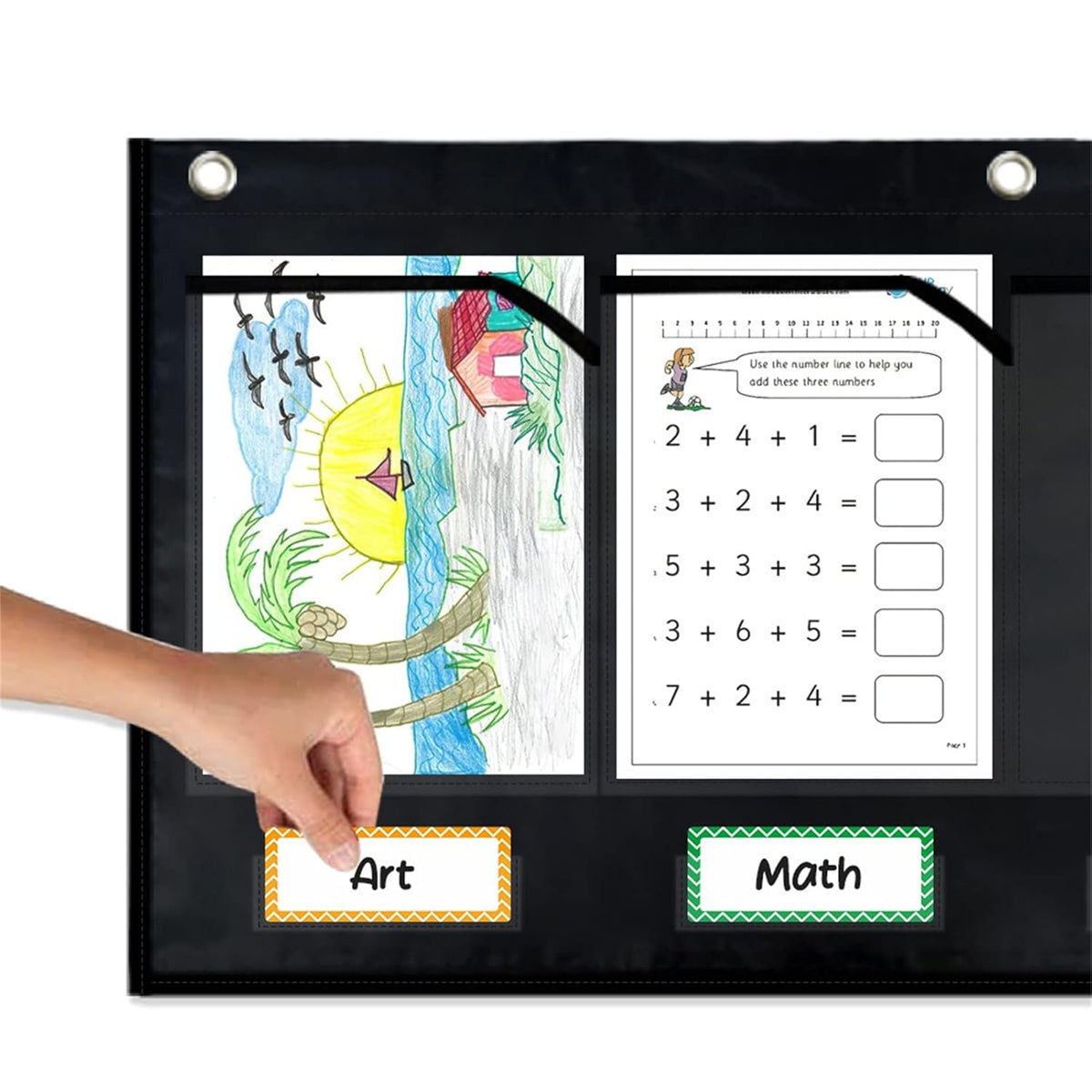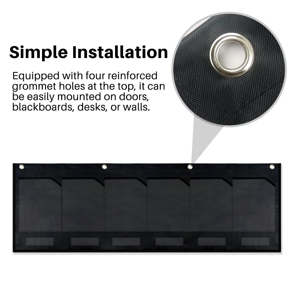Keep your space neat with this wall pocket chart. Crafted from durable Oxford cloth, it has 6 pockets to store documents, craft supplies, and stationery efficiently. Suitable for classrooms, offices, and homes, it features reinforced grommet holes for easy mounting on doors, blackboards, desks, or walls. Its user-friendly design lets you insert paper quickly from the top and right sides, simplifying daily organization.