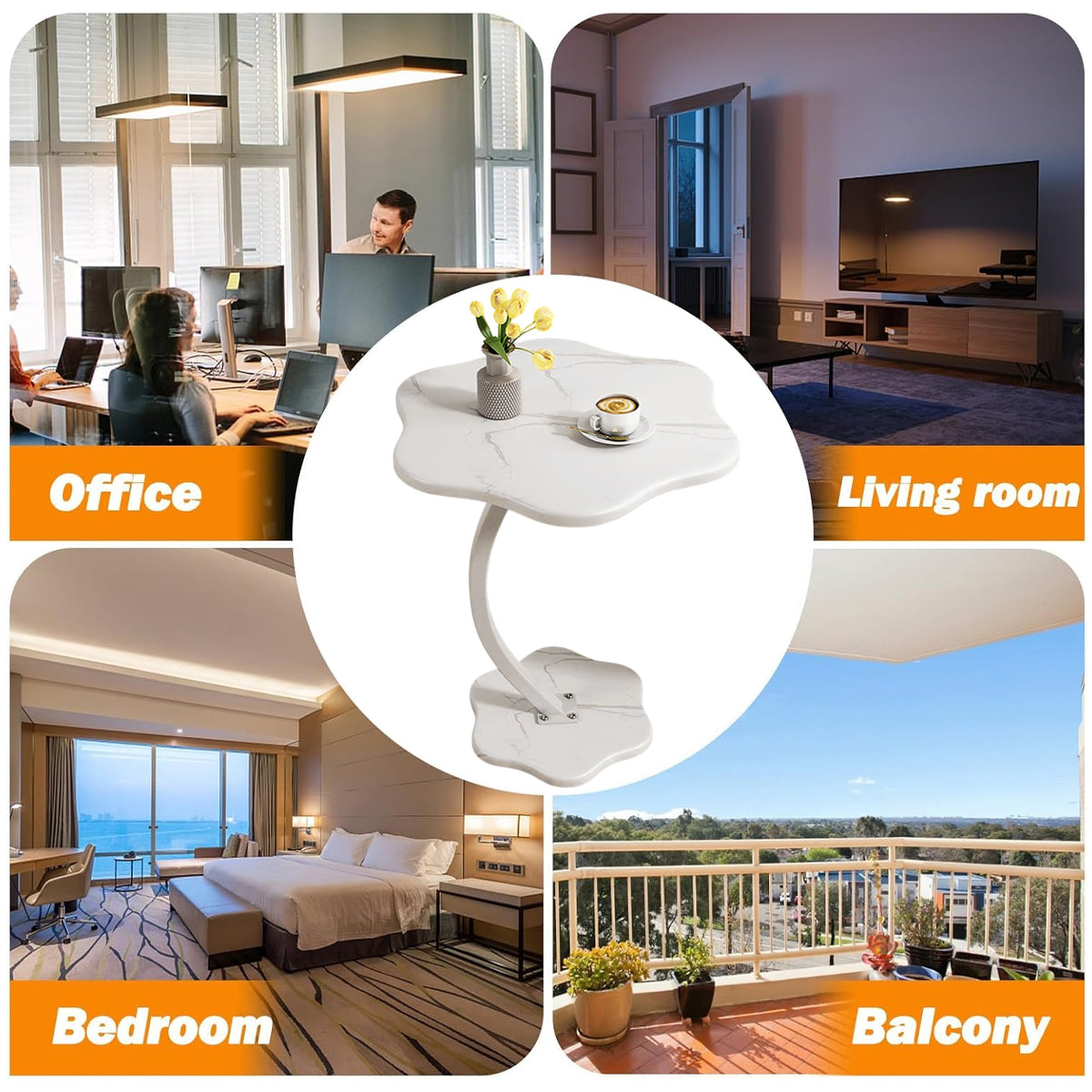 This white side table offers a stylish and practical surface for living rooms, offices, and bedrooms. Its smooth cloud-shaped top provides an elegant touch while offering space for drinks, books, remotes, or decor. The table fits neatly beside sofas and chairs, enhancing both convenience and aesthetics.