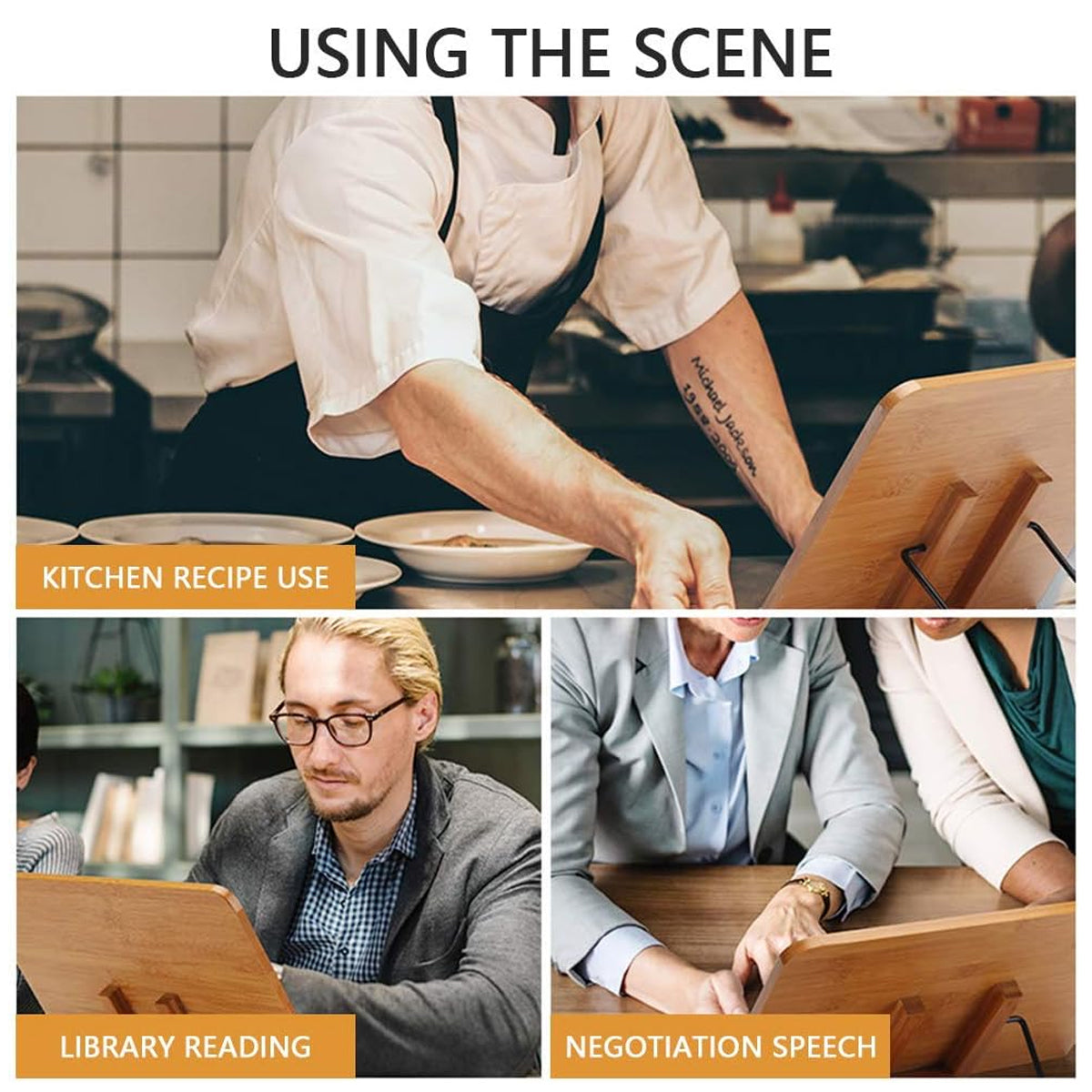 This wooden reading stand provides an ergonomic, multifunctional solution for reading and work. Built from durable eco-friendly wood with a polished, smooth surface, it offers eight adjustable angles to reduce neck and back strain. Suitable for books, tablets, or laptops, the stand delivers stable support while remaining lightweight for easy placement on any desk.