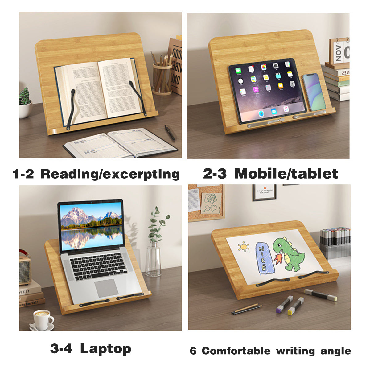 Wooden Adjustable Reading Stand Book Holder with 8 Angles