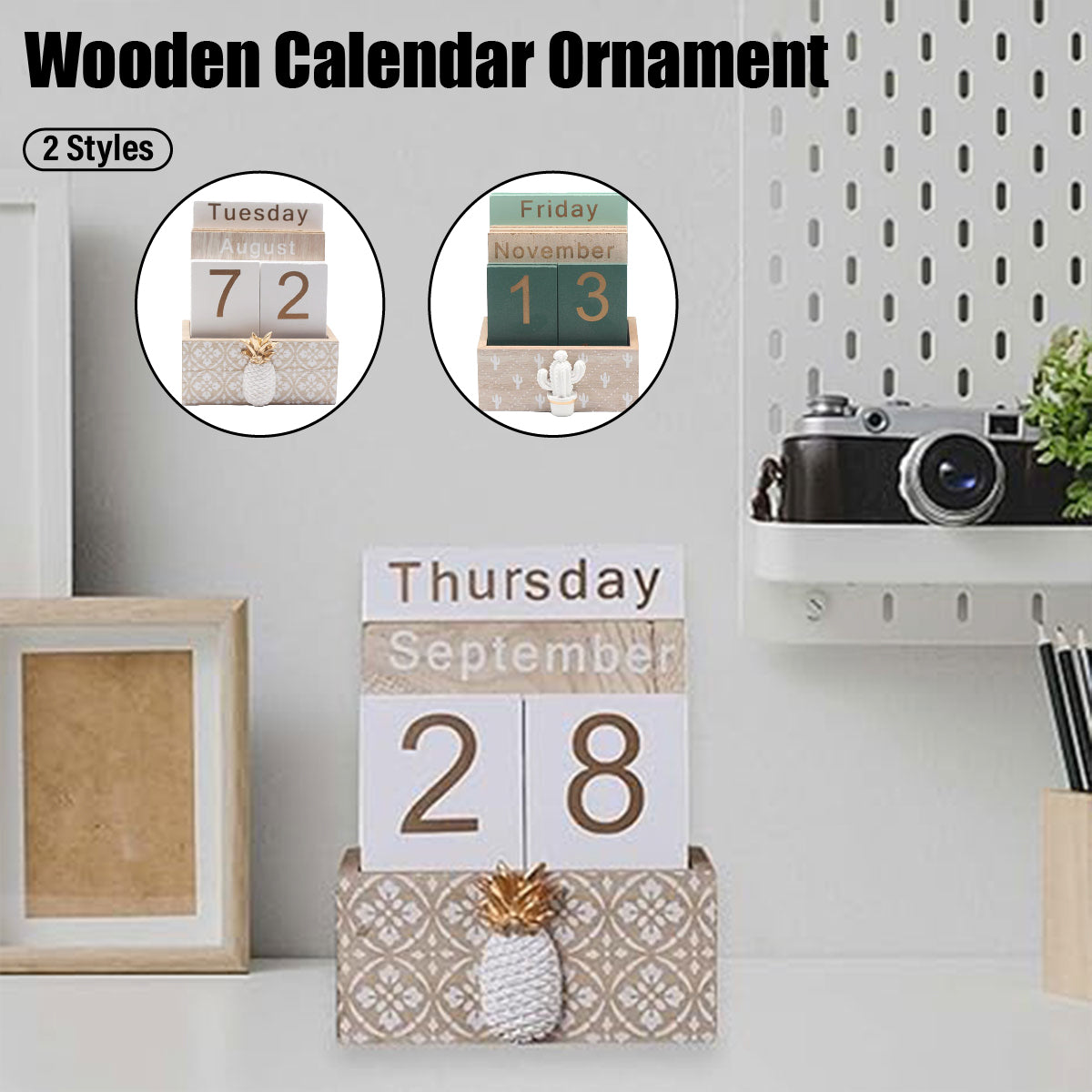 Wooden Perpetual Desk Calendar Retro Block Desktop Decor