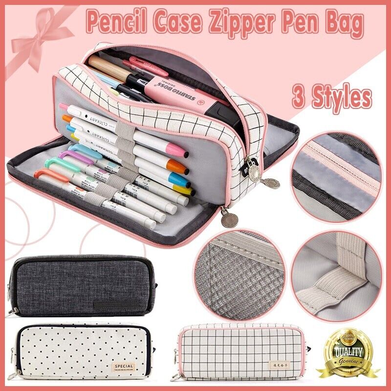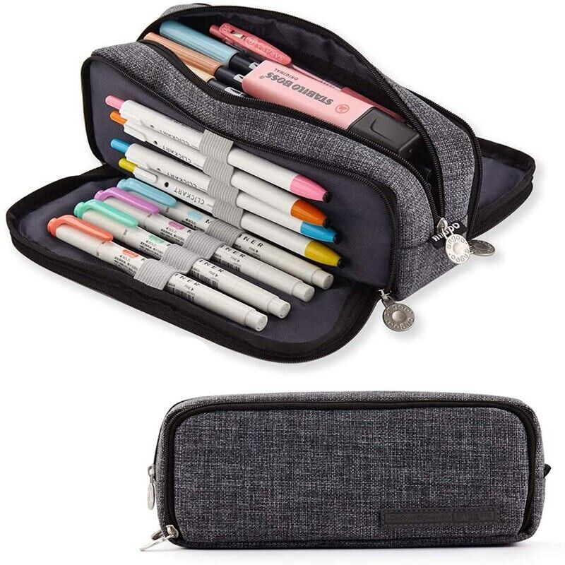 Zipper Pencil Case Large Capacity Canvas with 3 Compartments